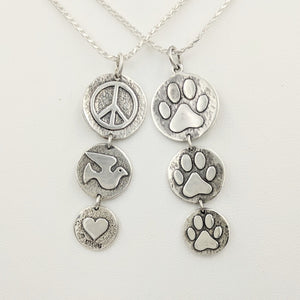 Puppy Dog or Kitty Cat Paw Print Tri-Coin Drop Reversible Pendant