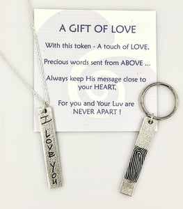 Fingerprint and Love Note Reversible Bar Pendant or Key Tag