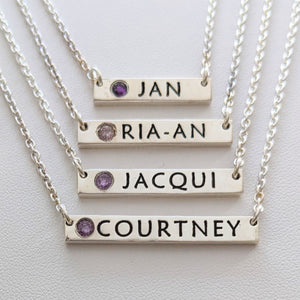 Custom Bar Name Necklaces with Gemstones - Sterling Silver